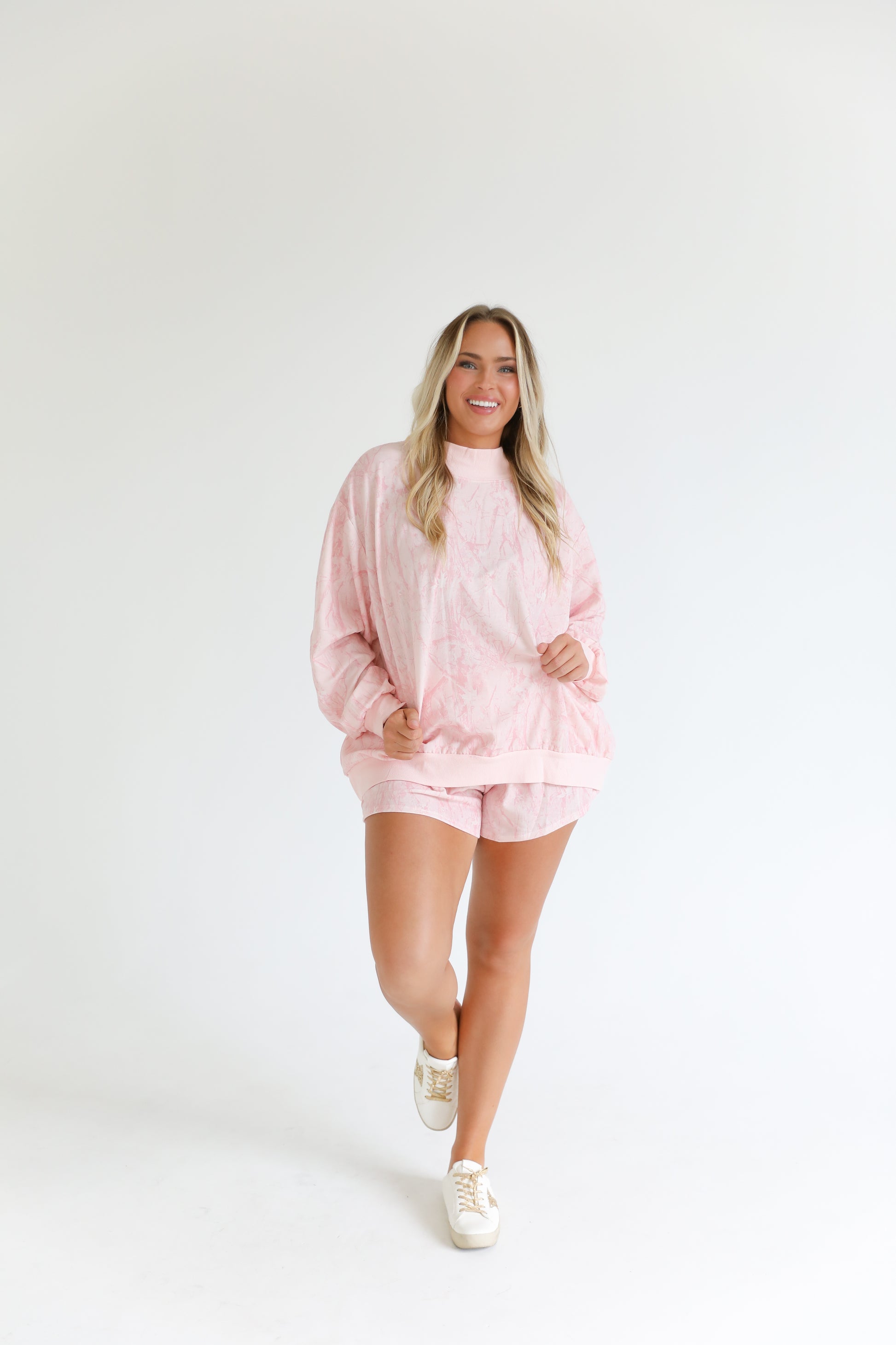 Pair fun with function in our Cotton Candy Camo Shorts. These pink camo knit shorts are comfy yet stylish, perfect for lounging or styling with the matching mockneck (Cotton Candy Camo Mockneck) for a cozy fall set. A playful twist on loungewear you’ll want to live in.