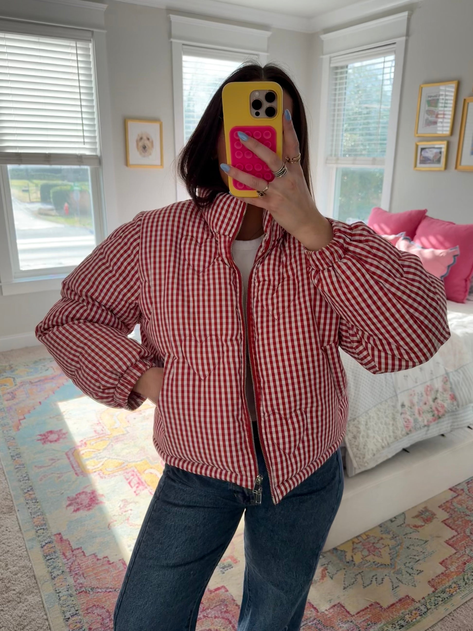 Meet the Heartbreaker Puffer — the cutest cold-weather statement jacket of the season. This red and white gingham puffer features heart-quilted stitching, a cozy insulated fill, and a high-neck collar for extra warmth. Made for the girls who love fashion and playful details, this jacket elevates any winter outfit with effortless charm. Style it with denim, leggings, or your favorite holiday look for a cozy, eye-catching layer. A must-have puffer for chilly days, festive events, and everyday Get It Girl energy.
