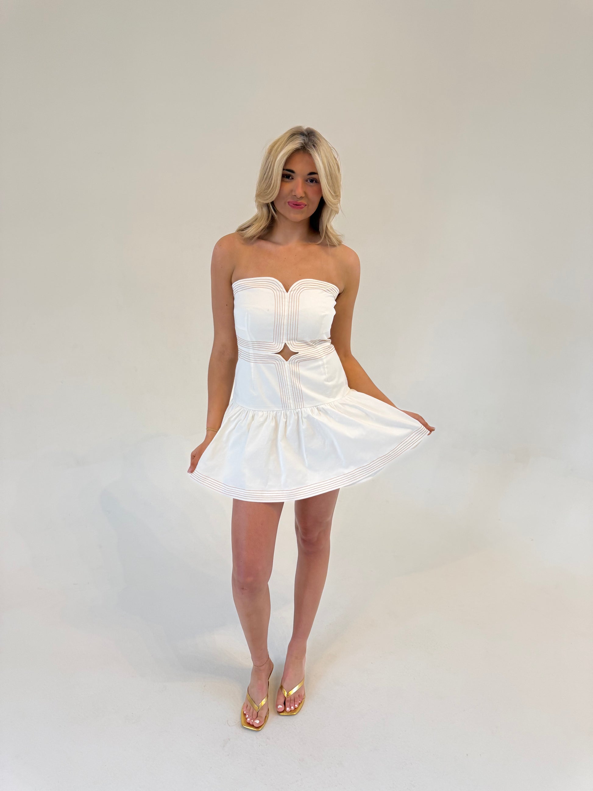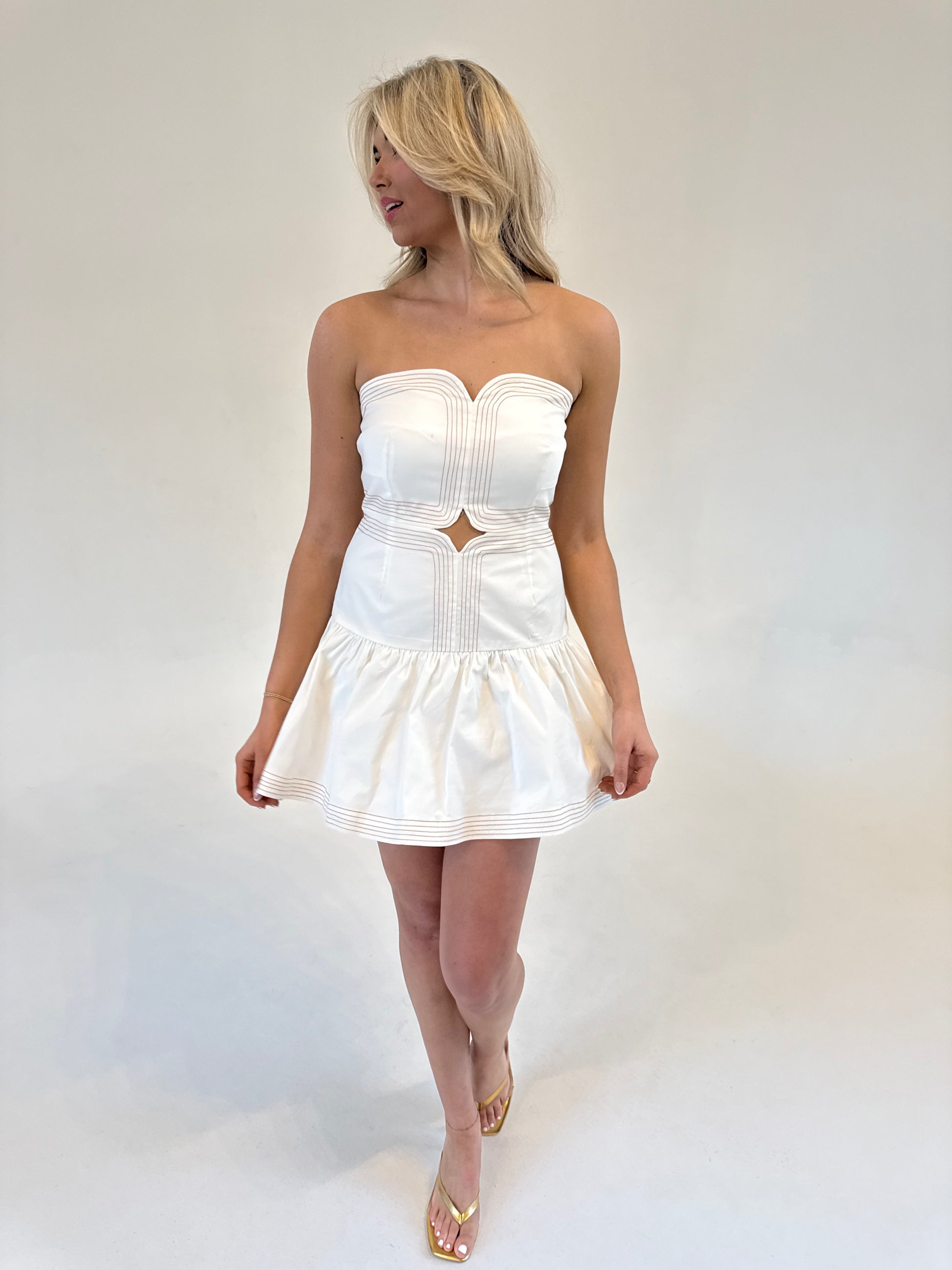 - White strapless mini dress